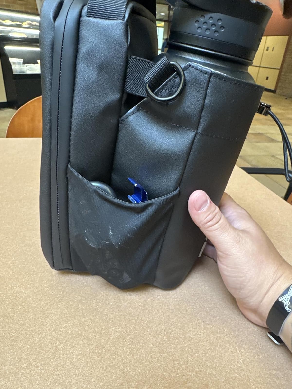 It comfortably fits most standard bottles up to 32oz — including Hydro Flask, BlenderBottle, and similar sizes. It also works great for storing shaker cups or even energy drinks.